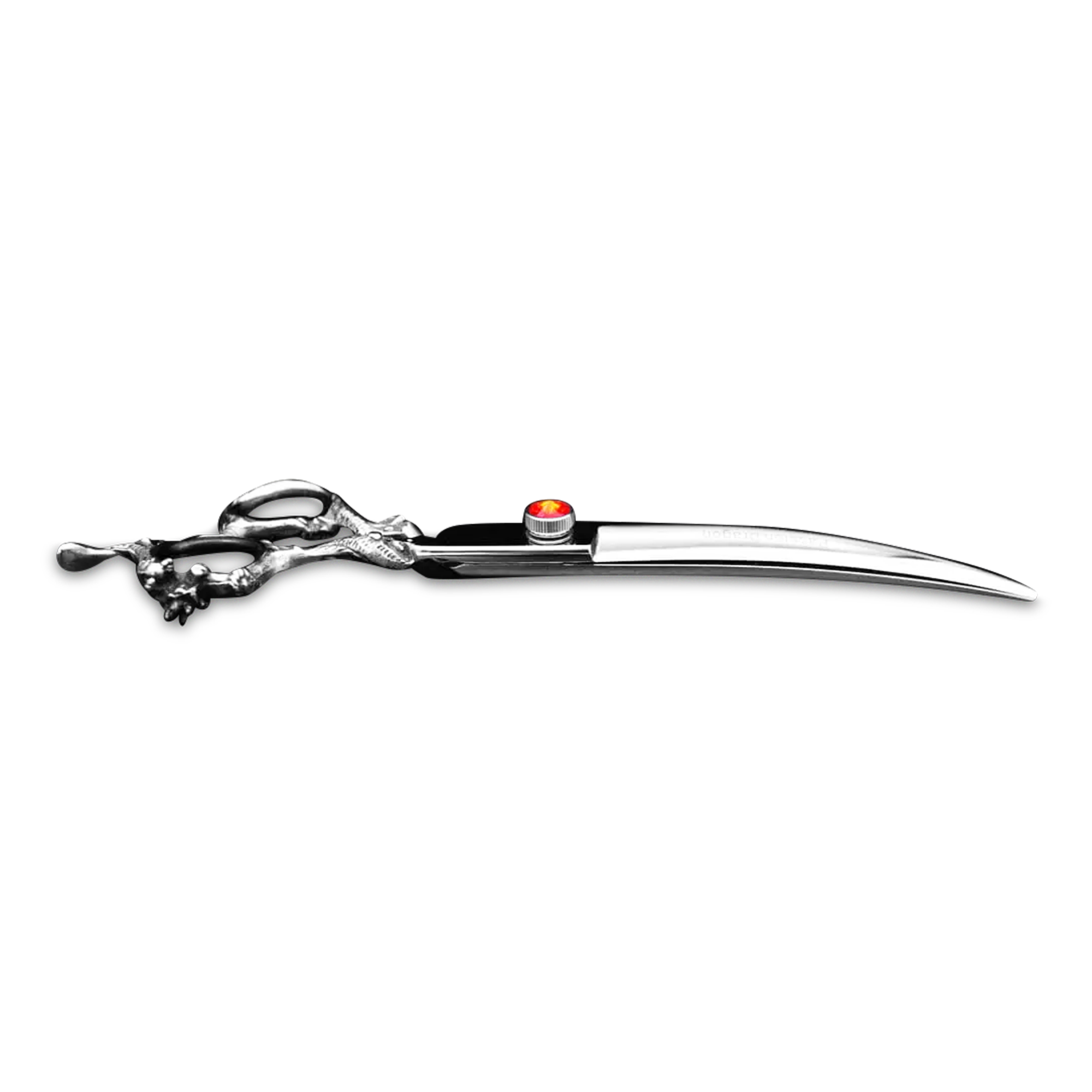 - Furthermore, a big part of what makes these scissors so eye catching is their unique offset ‘dragon’ handle. This handle whilst being extremely stylish is also incredibly functional, creating an ergonomically superior scissor. The offset handle enables you to achieve a more comfortable arm/elbow position that reduces the amount of fatigue you feel whilst working with these curved dog grooming scissors.
